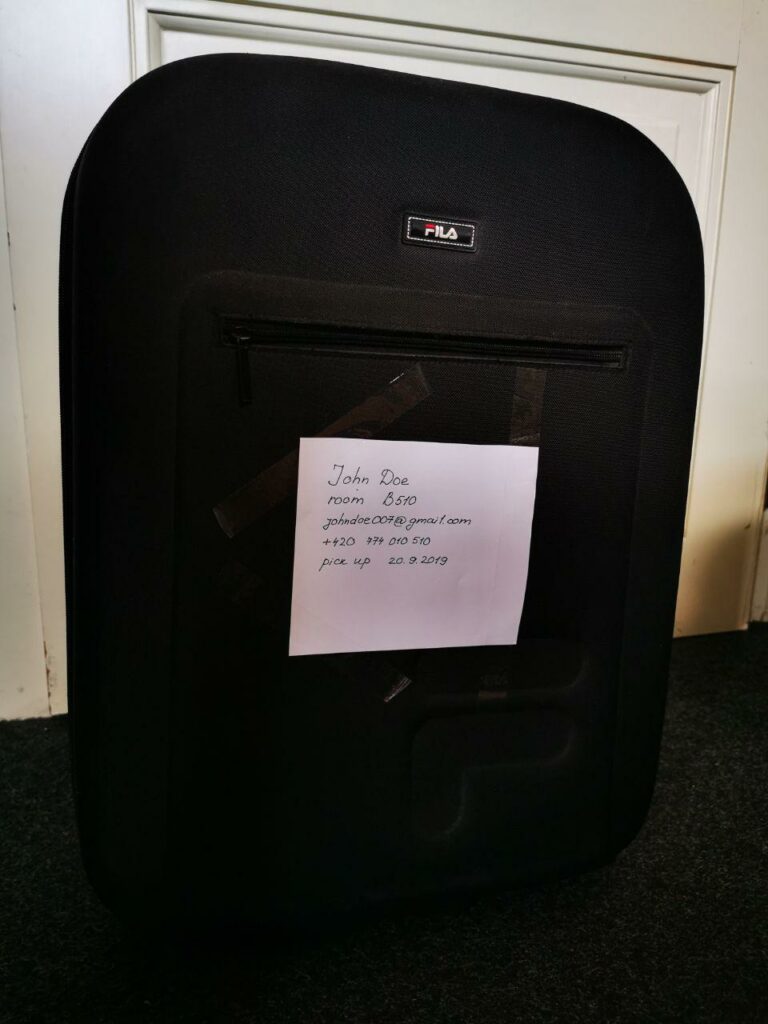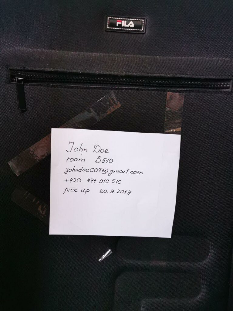 Each stored box or luggage must be properly signed and contain the following information: